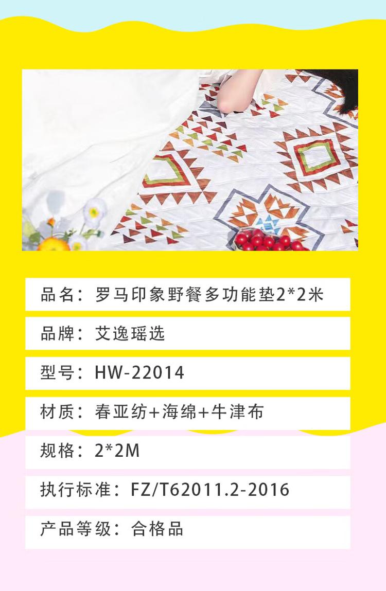 商品名称:艾逸瑶选 HW-22014 野餐垫 2*2米 单位:个