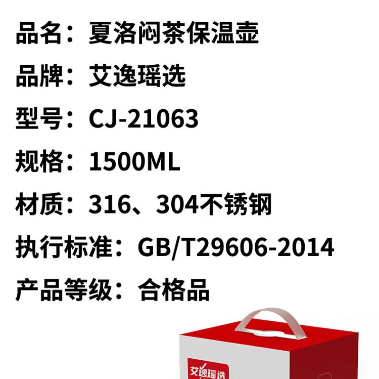 商品名称:艾逸瑶选 CJ-21063 夏洛闷茶保温壶 1500ML (单位:个)