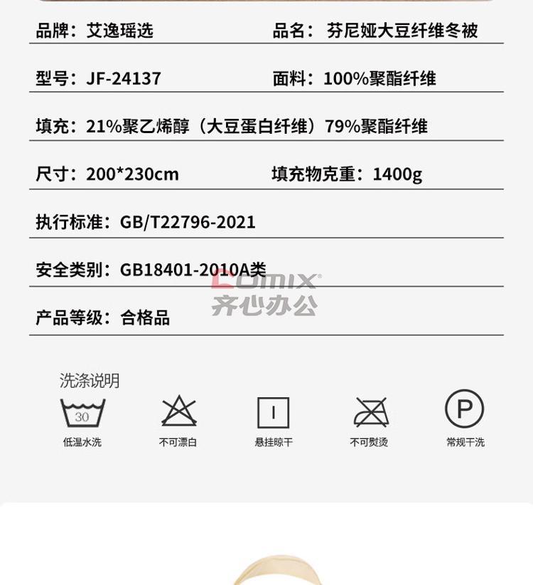 商品名称:艾逸瑶选 JF-24137 芬尼娅大豆纤维冬被 200*230cm (单位:床)