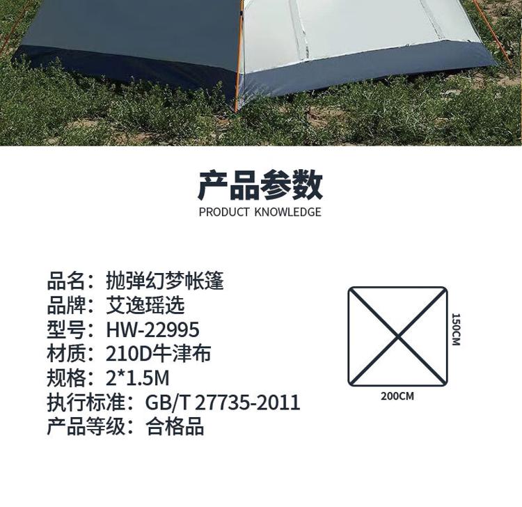 商品名称:艾逸瑶选 HW-22995 帐篷 2*1.5M 单位:顶