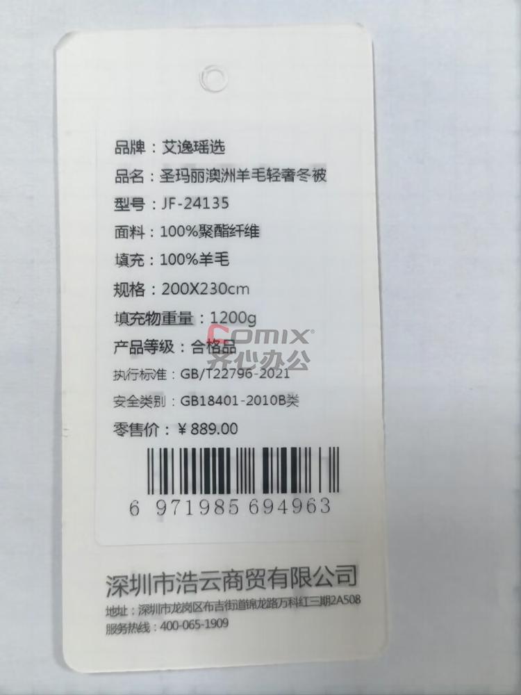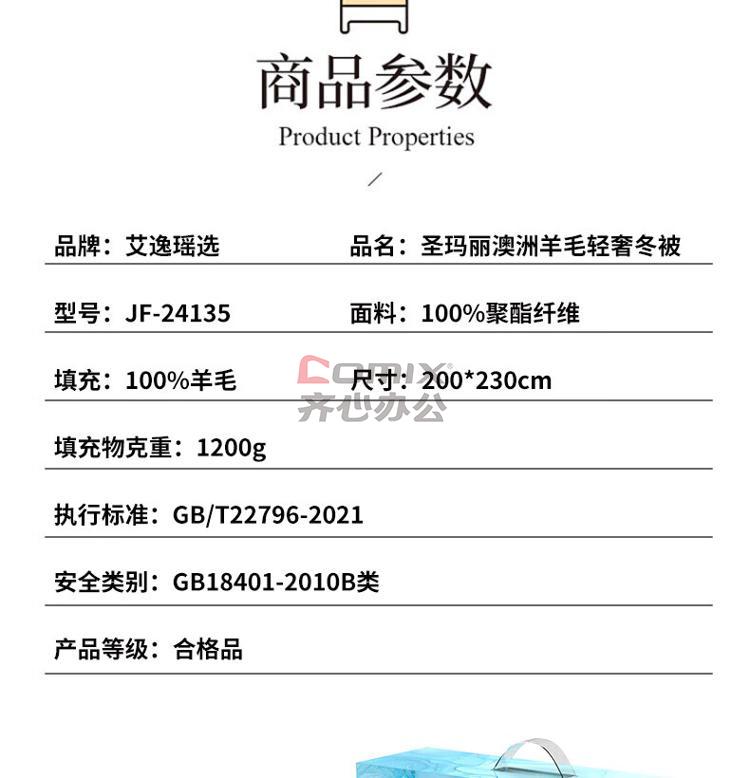 商品名称:艾逸瑶选 JF-24135 圣玛丽澳洲羊毛轻奢冬被 200*230cm (单位:床)