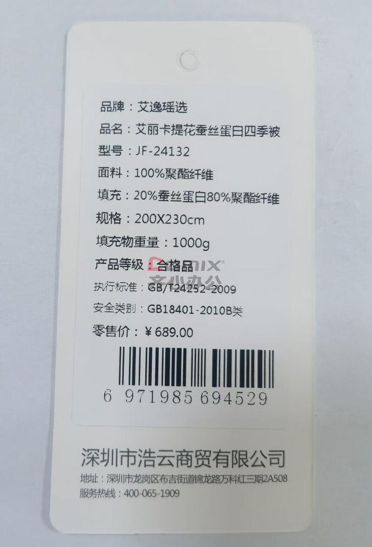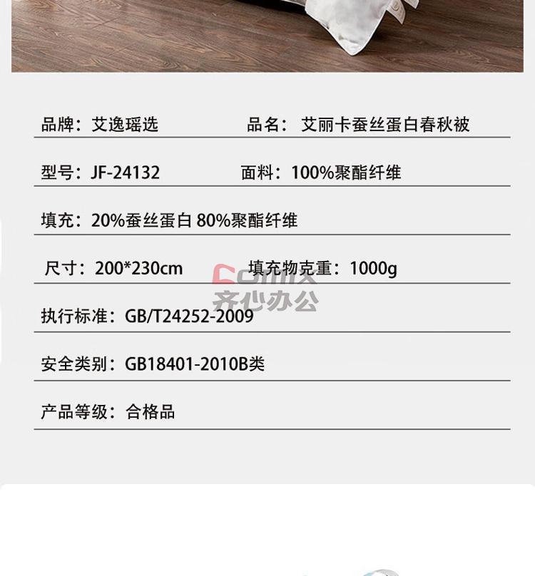 商品名称:艾逸瑶选 JF-24132 艾丽卡蚕丝蛋白春秋被 200*230cm (单位:床)