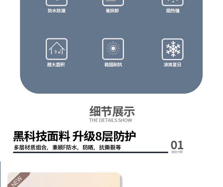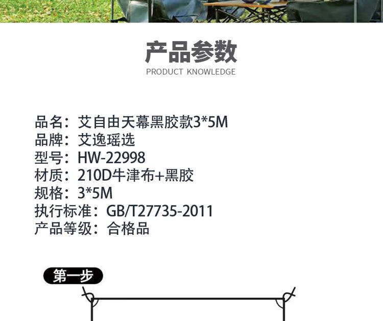商品名称:艾逸瑶选 HW-22998 艾自由天幕黑胶款 3*5m (单位:顶)
