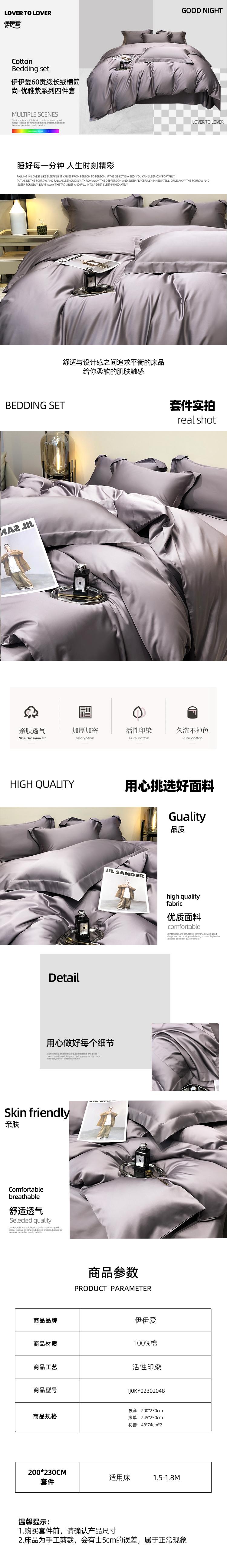 商品名称:伊伊爱TJ0KY0230204860贡缎长绒棉简尚-优雅紫系列四件套200*230cm(单位:套)
