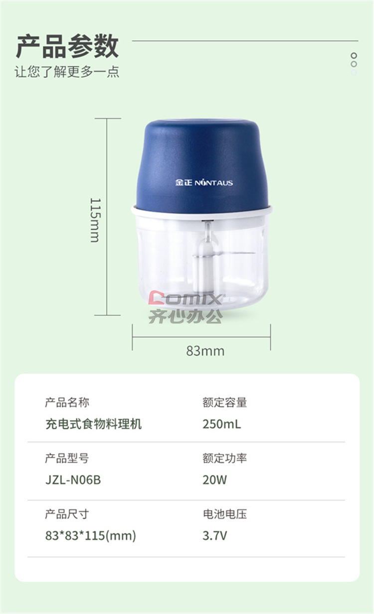 商品名称:金正 JZL-N06B 充电式食物料理机 250mL (单位:个)