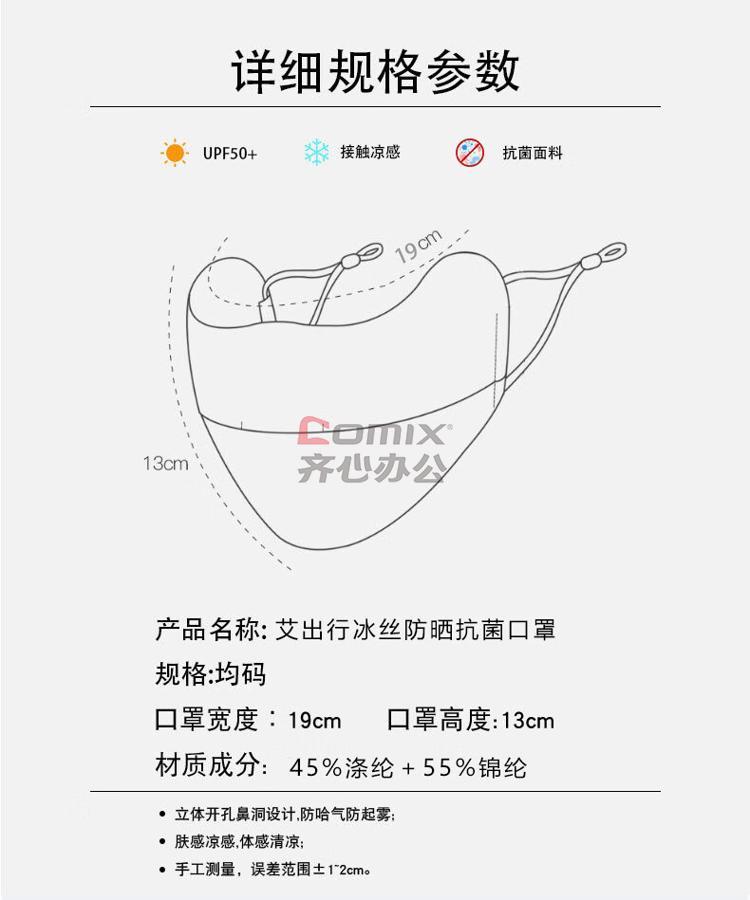 商品名称:艾逸瑶选 FS-2509 艾出行冰丝防晒抗菌口罩 均码 (单位:个)