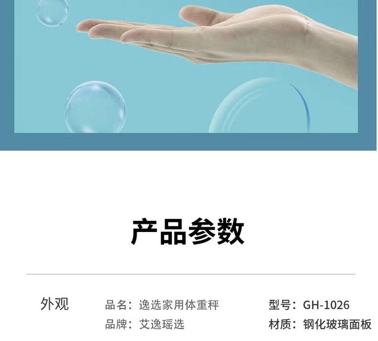 商品名称:艾逸瑶选 GH-1026 逸选家用体重秤 260*260mm (单位:个)