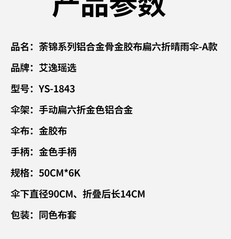 艾逸瑶选 YS-1843 荼锦系列铝合金骨金胶布扁六折晴雨伞-A款 50cm*6K (单位:把)