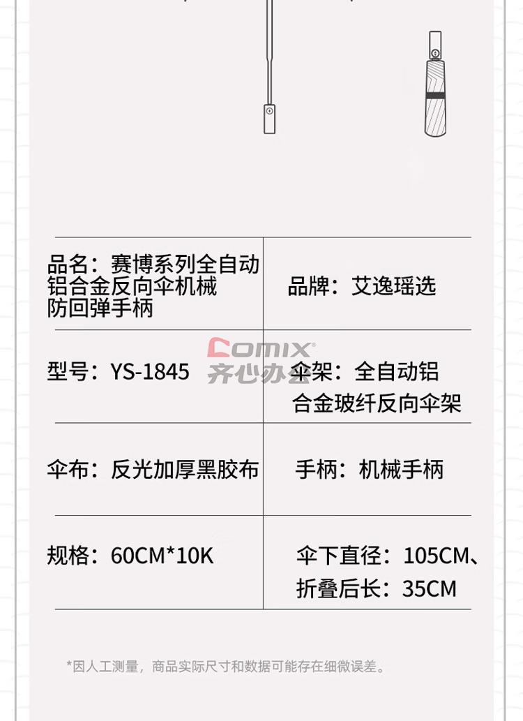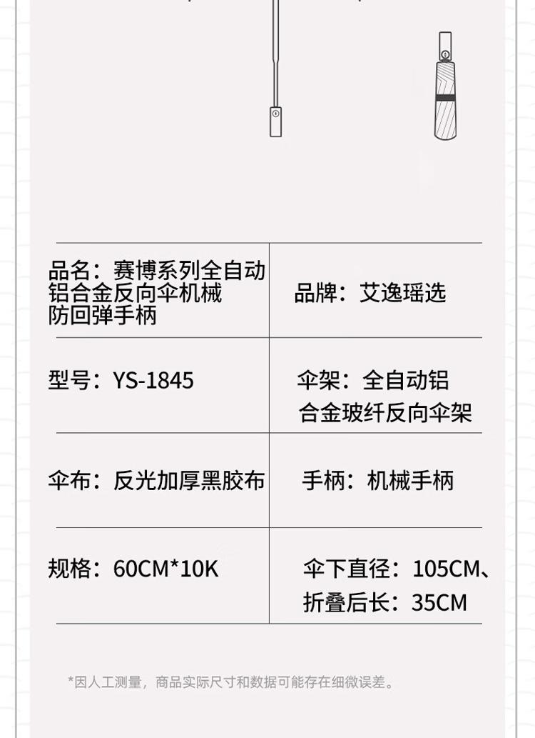商品名称:艾逸瑶选 YS-1845 赛博系列全自动铝合金反向伞机械防回弹手柄 60cm*10K (单位:把)