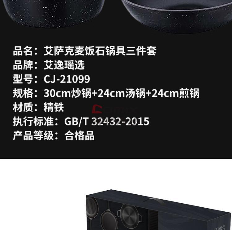 商品名称:艾逸瑶选 CJ-21099 艾萨克麦饭石锅具三件套 (单位:套)