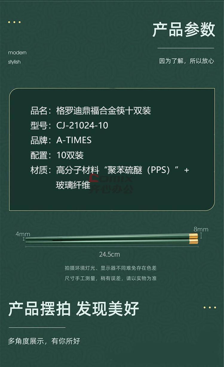 商品名称:A-TIMES CJ-21024-10 格罗迪鼎福合金筷十双装 (单位:盒) 颜色默认
