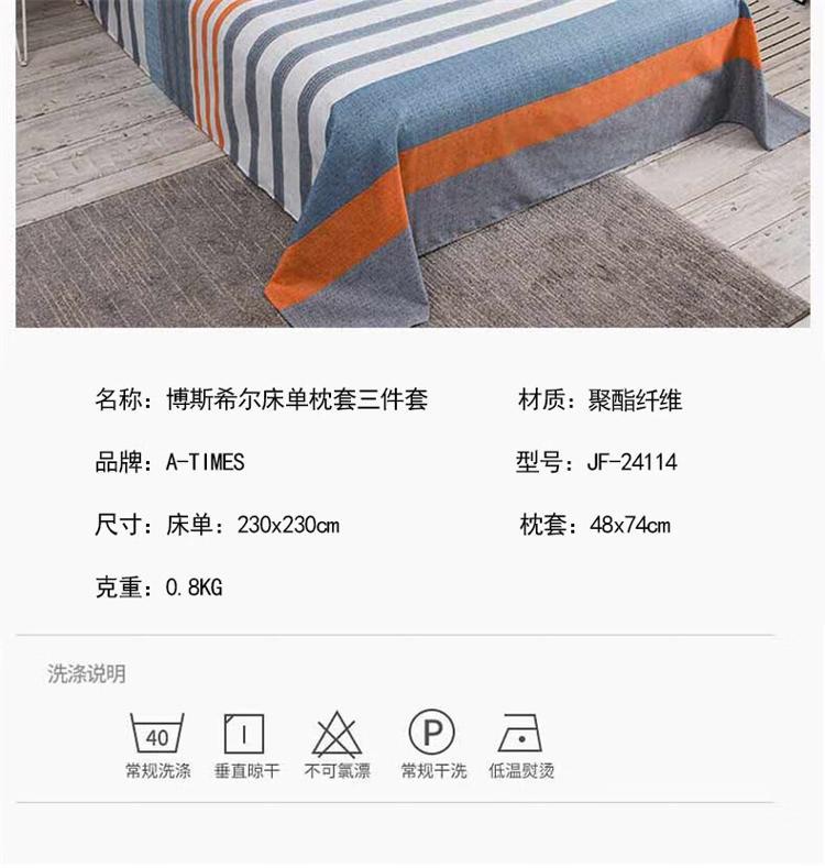 商品名称:A-TIMES JF-24114 三件套 床单:230x230cm 枕套:48x74cm 单位:套