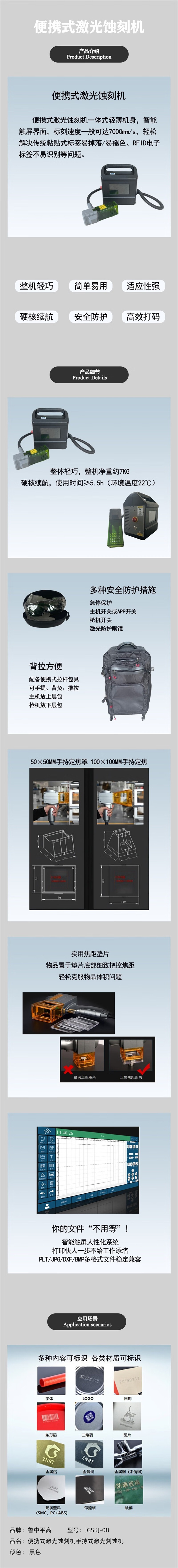 商品名称:鲁中平高 JGSKJ-08 便携式激光蚀刻机手持式激光刻蚀机 (计价单位:台) 黑色