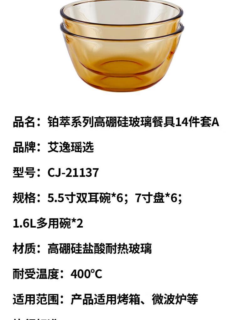 艾逸瑶选 CJ-21137 铂萃系列高硼硅玻璃餐具14件套A (单位:套)
