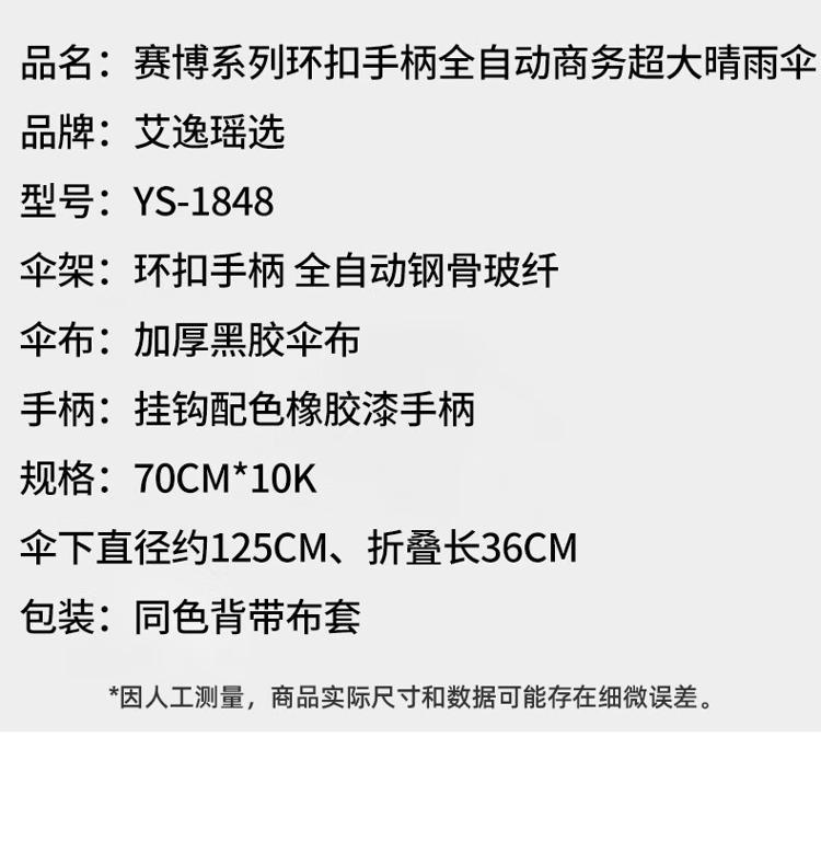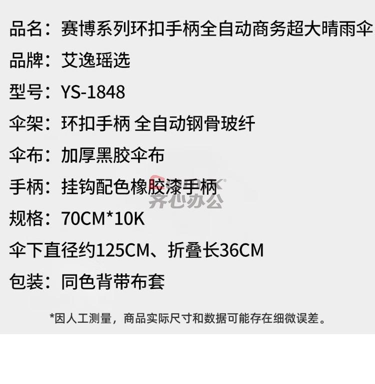 商品名称:艾逸瑶选 YS-1848 赛博系列环扣手柄全自动商务超大晴雨伞 70cm*10K(单位:把)