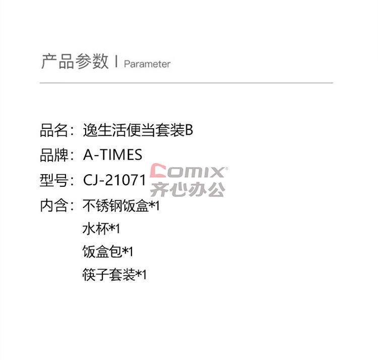 商品名称:A-TIMES CJ-21071 逸生活便当套装B 不锈钢饭盒、水杯、筷子、饭盒包套装(单位:套)