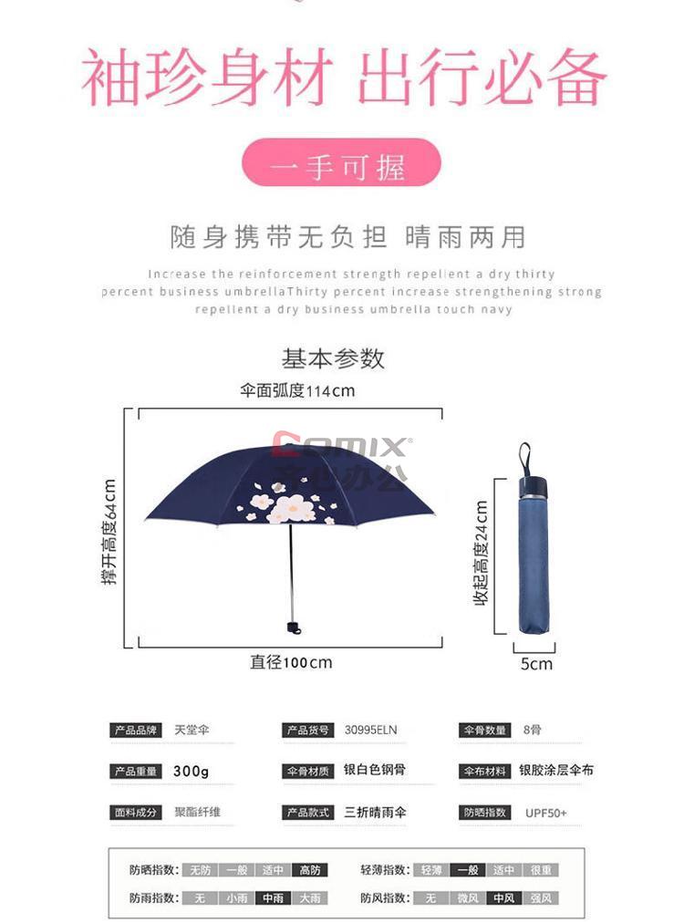 商品名称:天堂伞 30995ELN 花沁蜜语防晒防紫外线晴雨伞 (57cm*8K) 藏青 (单位:把)