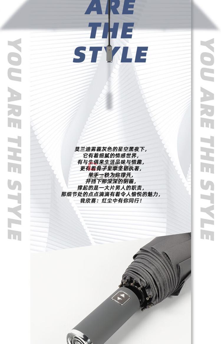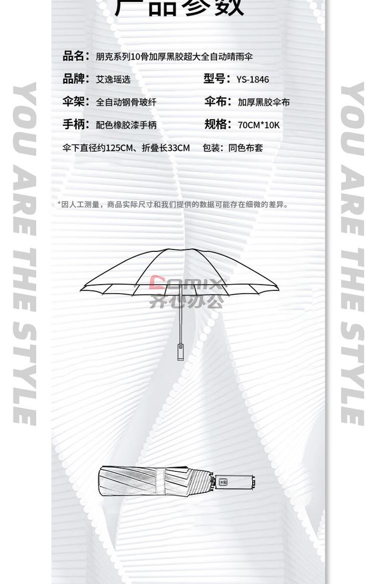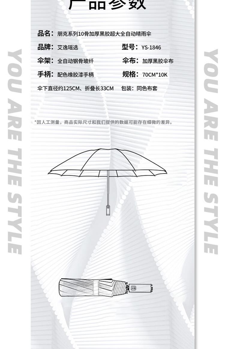商品名称:艾逸瑶选 YS-1846 朋克系列10骨加厚黑胶超大全自动晴雨伞 70cm*10K(单位:把)