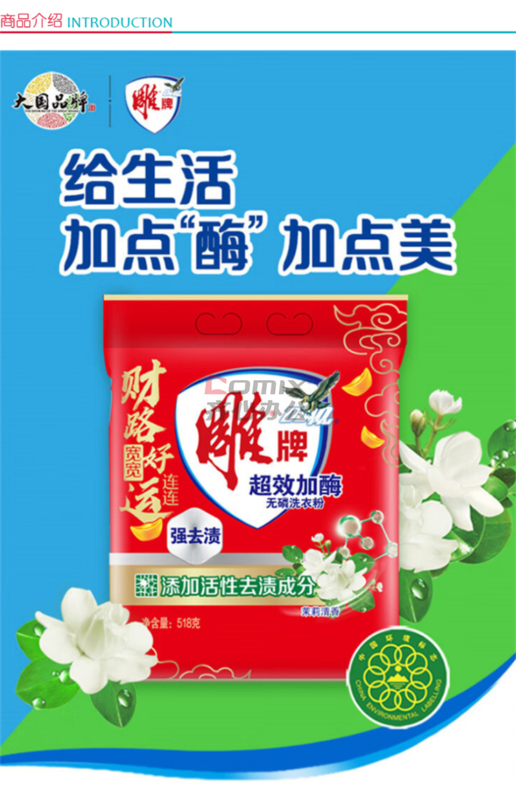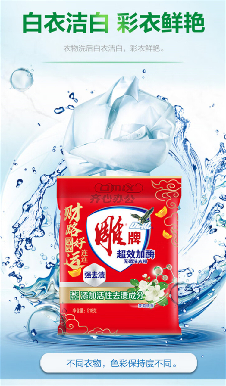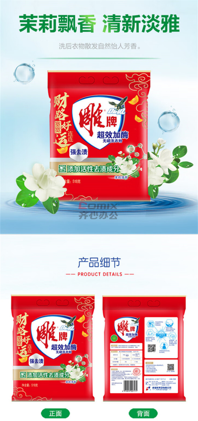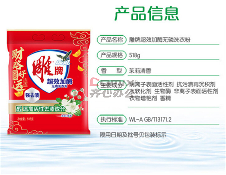 商品名称:雕牌 超效加酶 无磷洗衣粉 518g (单位: 袋)
