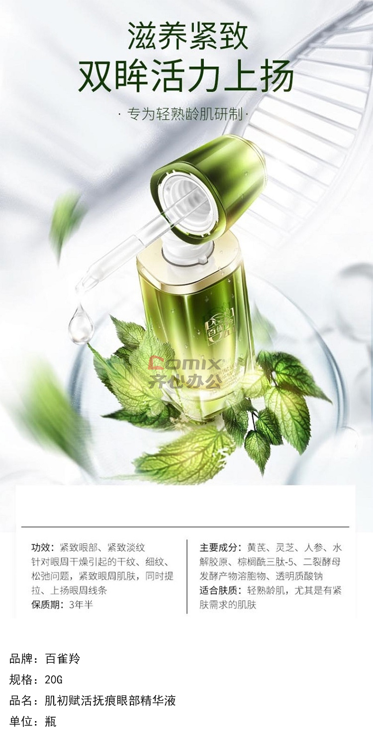 商品名称:百雀羚 20g 肌初赋活抚痕眼部精华液 (单位:瓶)