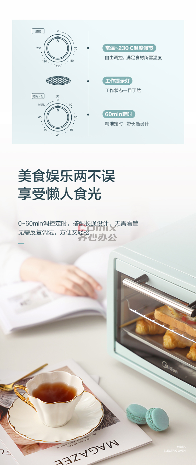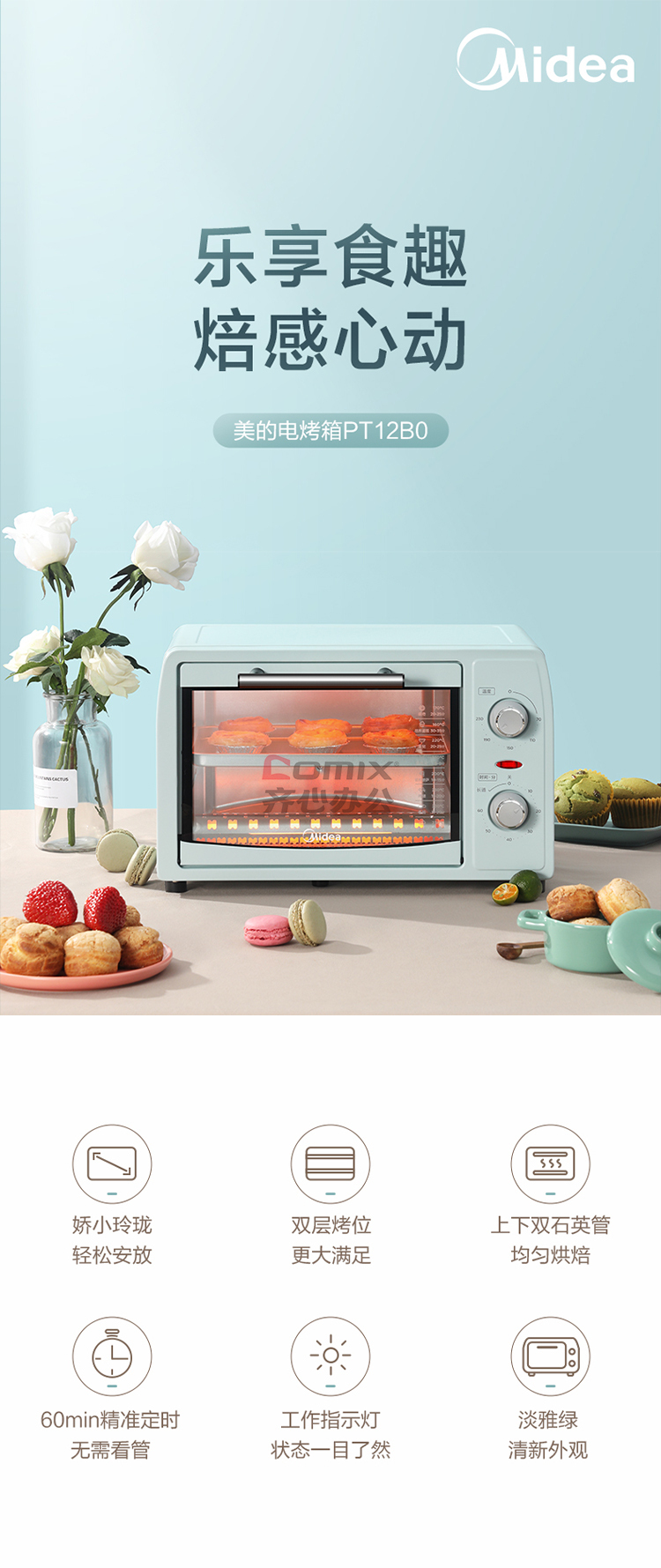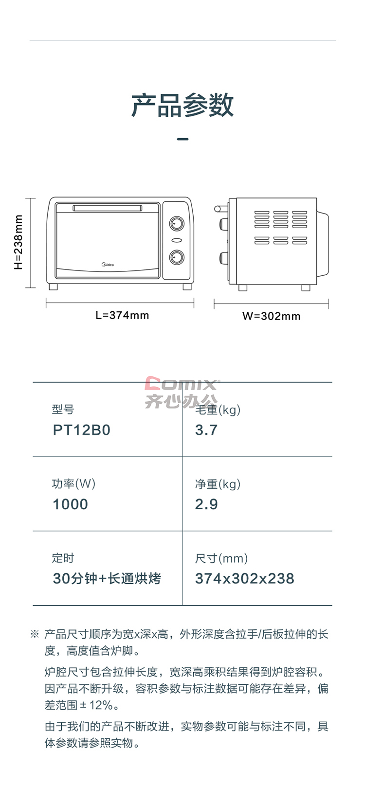 商品名称:美的 PT12B0 上下石英管均匀烘焙12L多功能迷你烤箱 单位:个