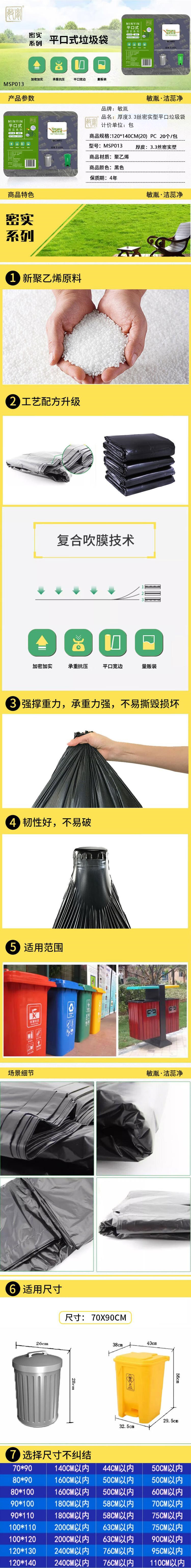 敏胤 MSP013 120*140cm 20个/包 厚度3.3丝密实型平口垃圾袋(计价单位:包) 黑色