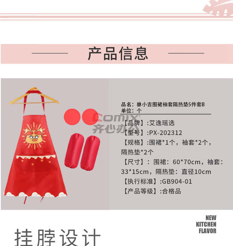 艾逸瑶选 PX-202312 貅小吉围裙袖套隔热垫5件套B (单位:套)