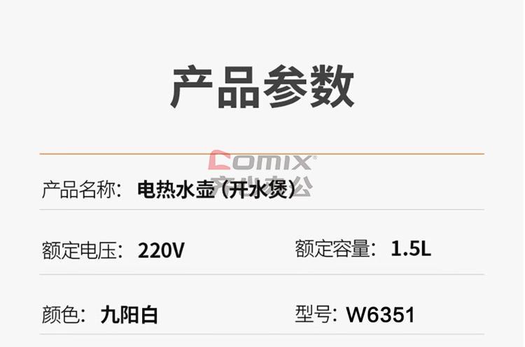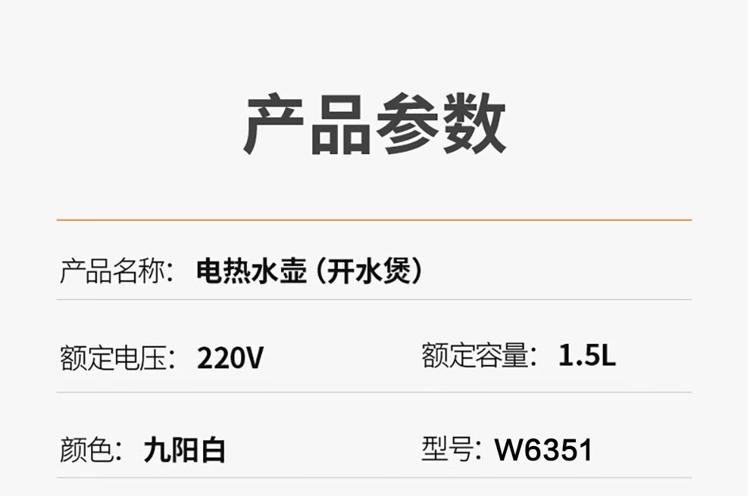商品名称:九阳 K15FD-W6351 电热水壶1.5L 单位:个