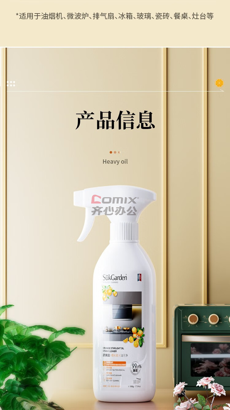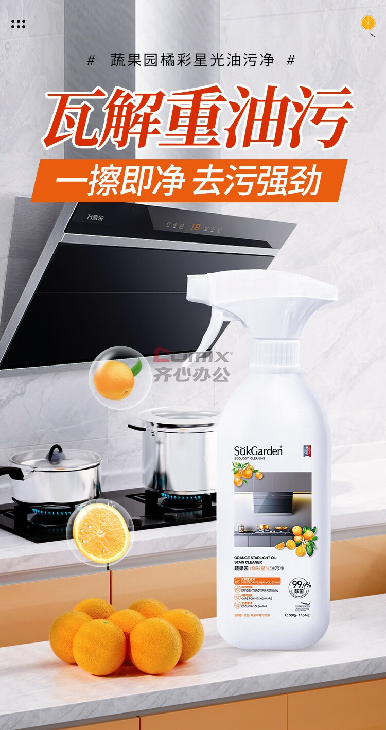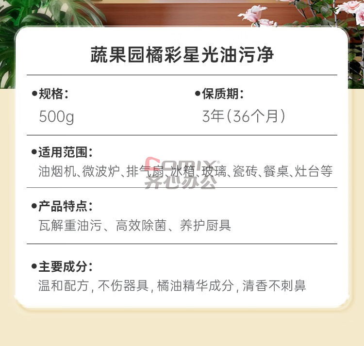 商品名称:蔬果园 500g 强力去重油去污垢清洁剂 【橘彩星光】单位:瓶