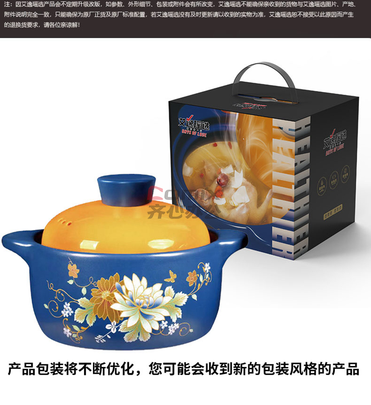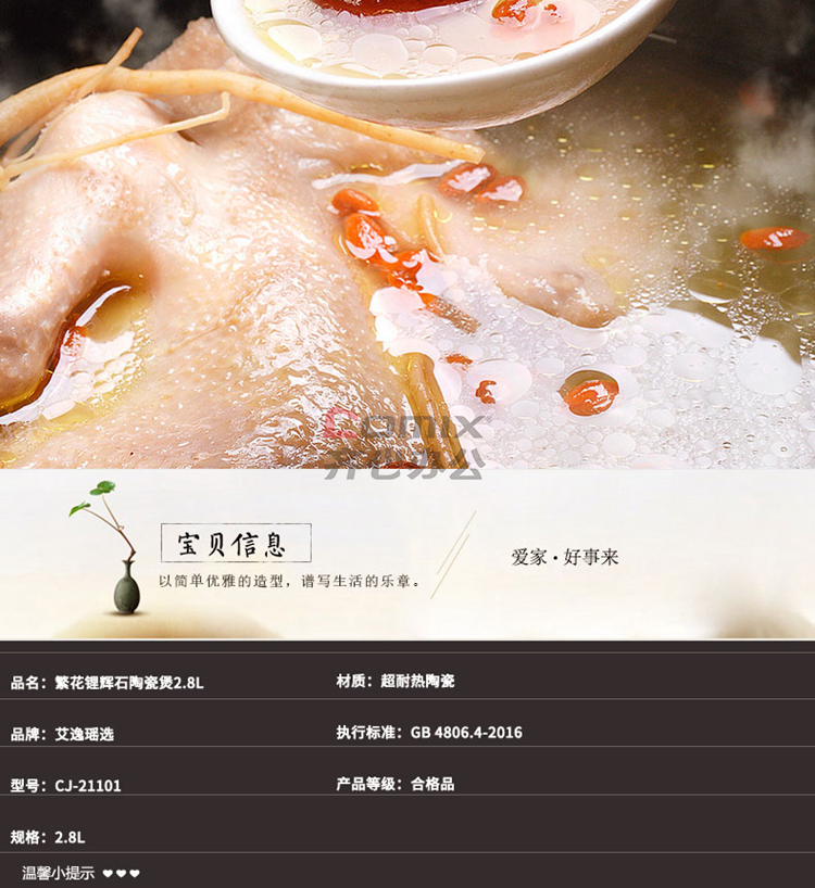 商品名称:艾逸瑶选 陶瓷煲 2.8L CJ-21101 (单位:个)