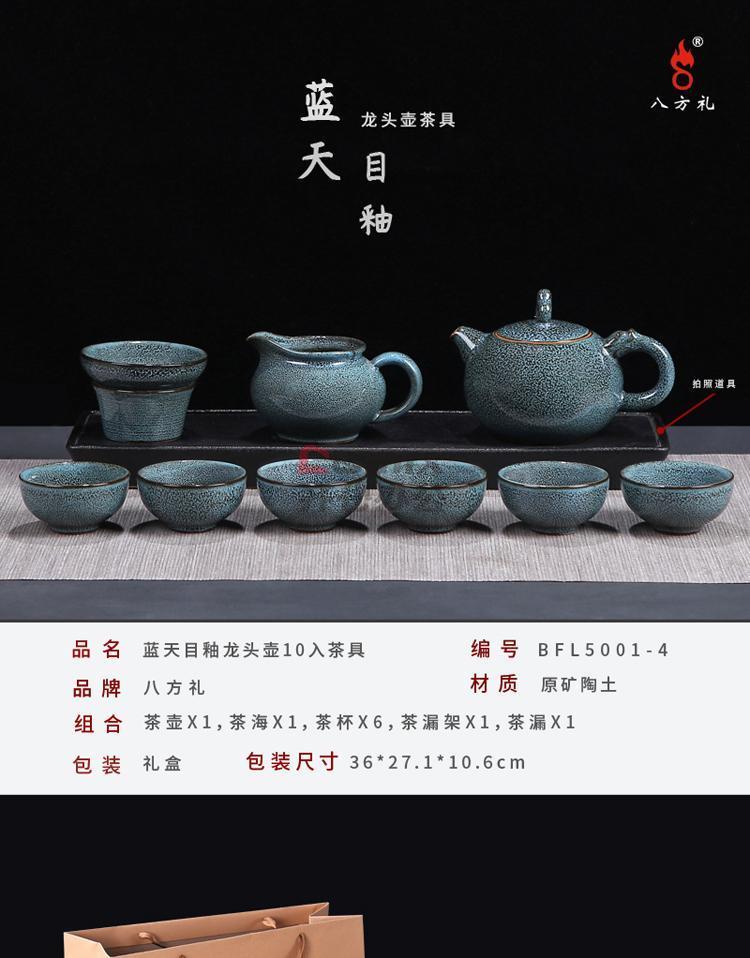 商品名称:八方礼 BFL5001-4 蓝天目釉龙头壶10入茶具套装(单位:套)