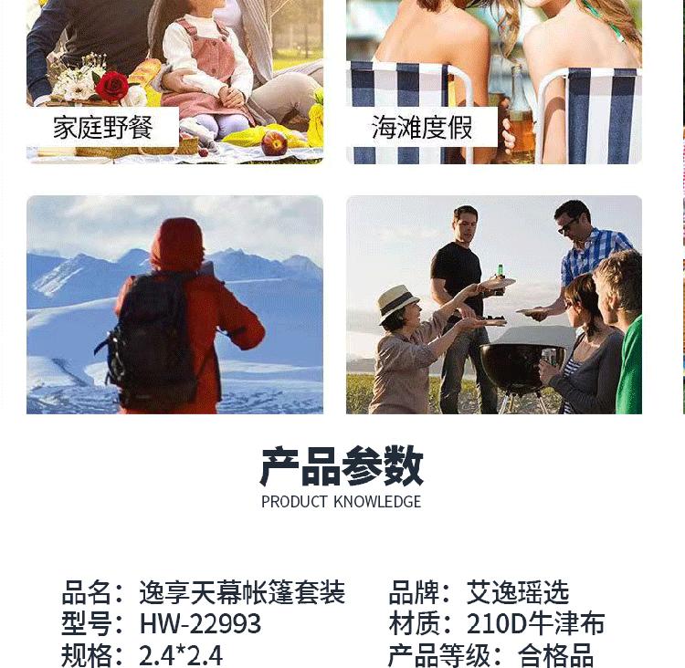 商品名称:艾逸瑶选 HW-22993 逸享天幕帐篷套装 2.4*2.4M (单位:套)