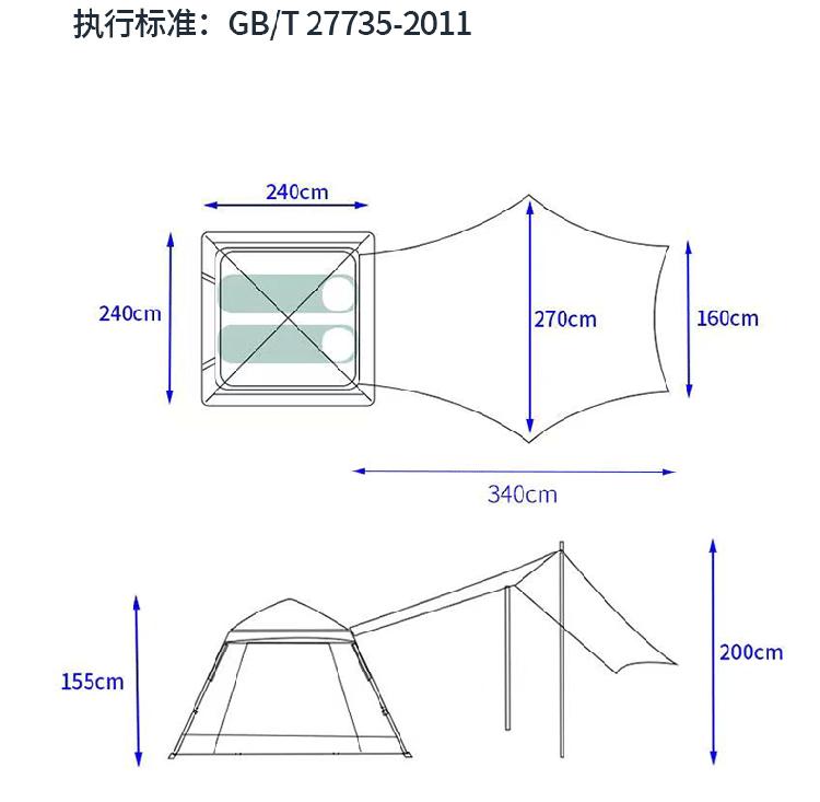 艾逸瑶选 HW-22993 逸享天幕帐篷套装 2.4*2.4M (单位:套)