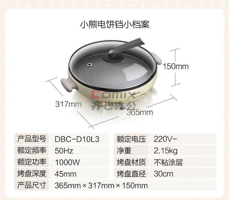 小熊(Bear) DBC-D10L3 电饼铛家用 薄饼机煎饼锅烙饼锅多功能烙饼神器 (单位:台)
