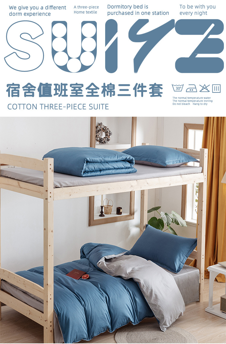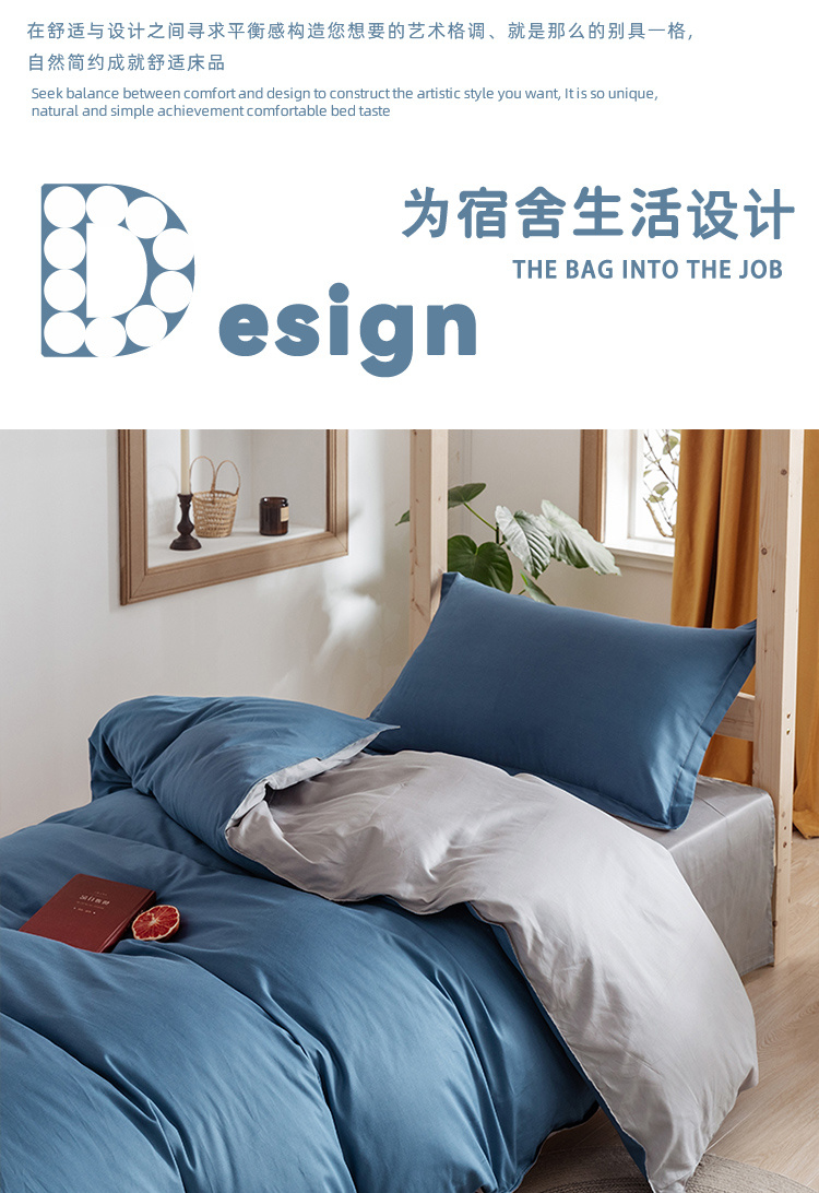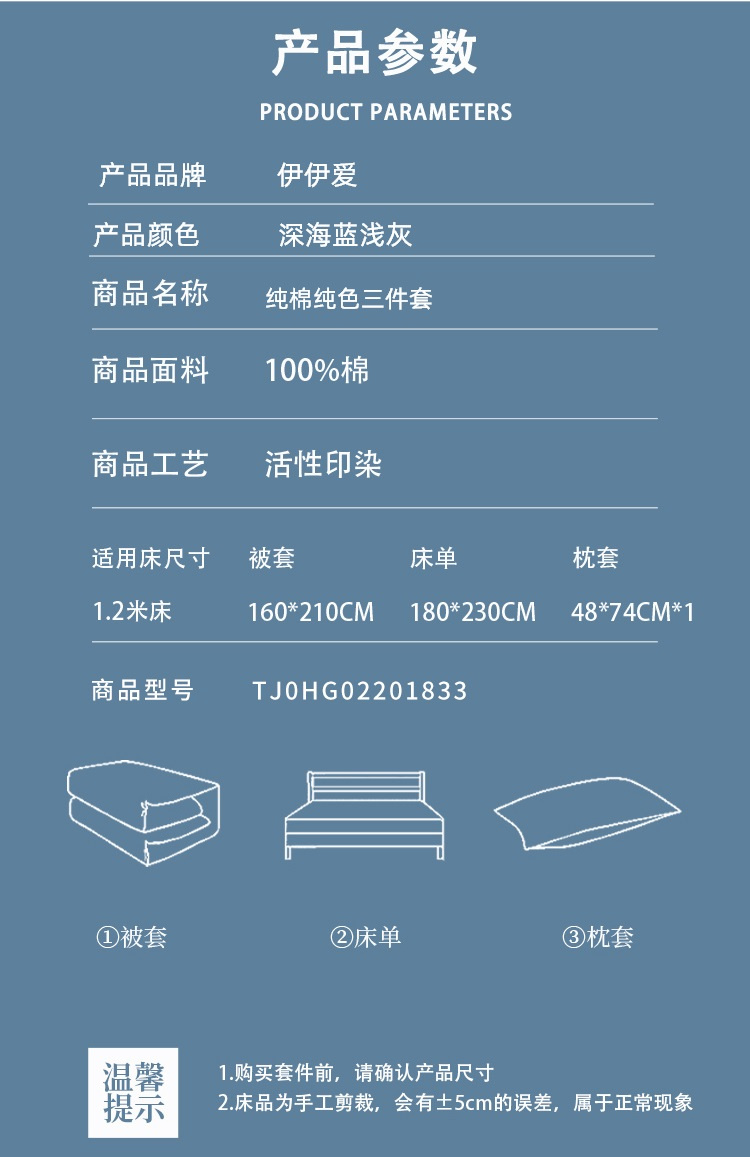 伊伊爱 TJ0HG02201833/160*210cm 纯棉纯色三件套 (计价单位:套) 深海蓝浅灰
