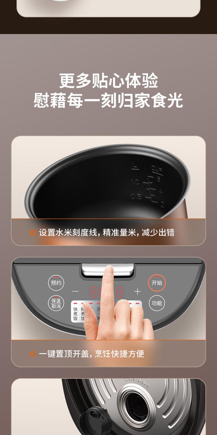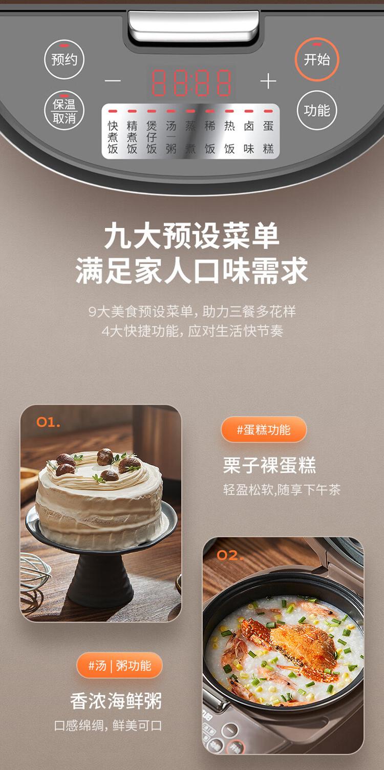 金属机身置顶触控界面,9大功能,特色卤功能、24小时智能预约、黄晶内胆 容量:3L