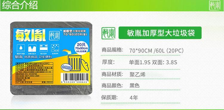 商品名称:敏胤 70*90cm 干垃圾 20个/包 可降解分类垃圾袋 (计价单位:包) 黑色