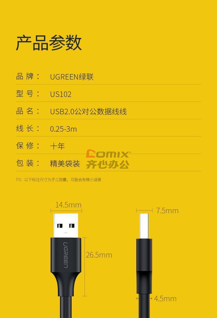 商品名称:绿联 10308 USB数据线公对公 0.5米(单位:个)