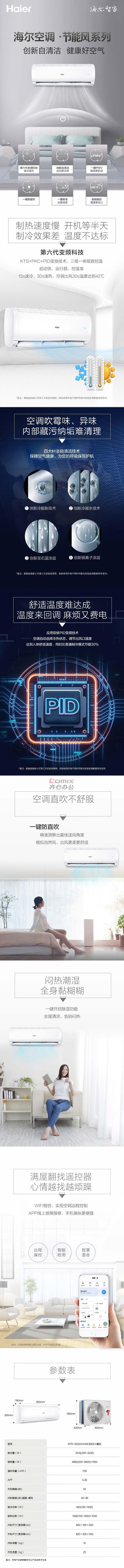 海尔(Haier) KFR-35GW/A1MCB83U1 1.5匹 三级 变频 分体壁挂式空调 (计价单位:台) 白色