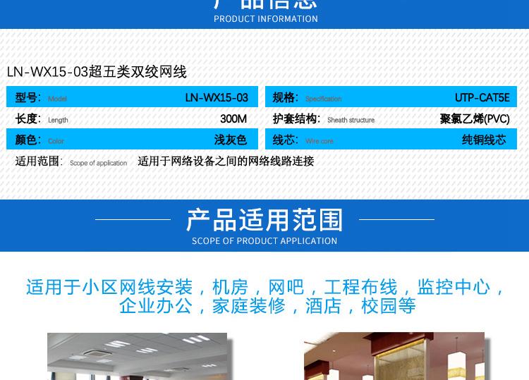 - 商品名称:丽贴 LN-WX15-03 0.49mm无氧铜线芯 超五类非屏蔽网线 300.00 米/箱 (计价单位:箱) 浅灰色