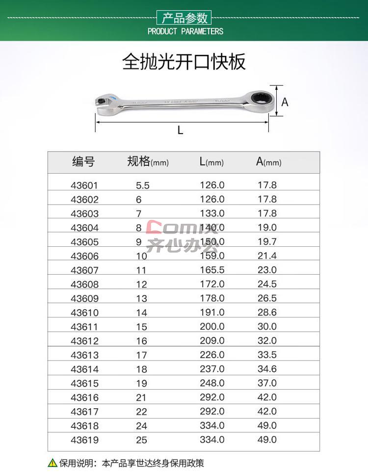 商品名称:世达 全抛光开口快扳7MM 货号:43603 单位:把