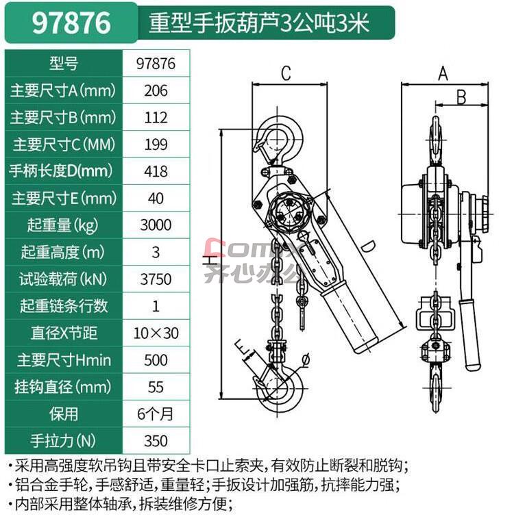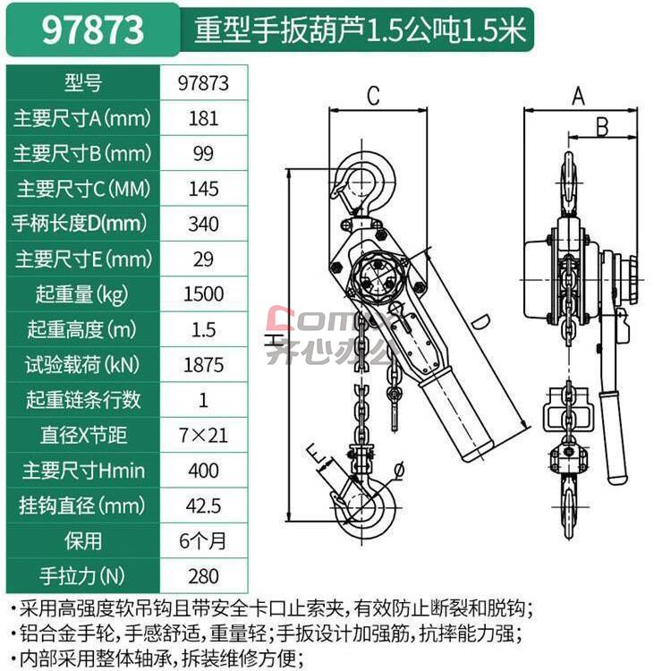 商品名称:世达 重型手拉葫芦1公吨6米 货号:97862 单位:台
