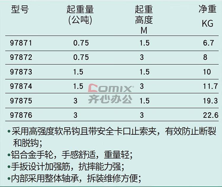商品名称:世达 重型手扳葫芦1.5公吨1.5米 货号:97873 单位:台