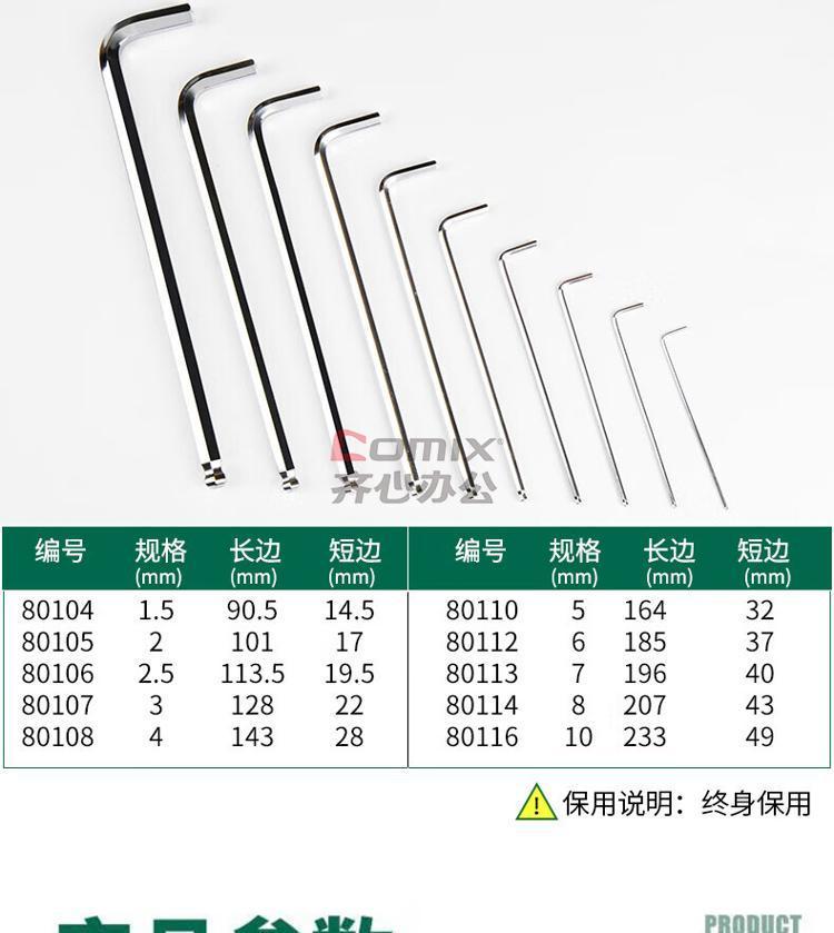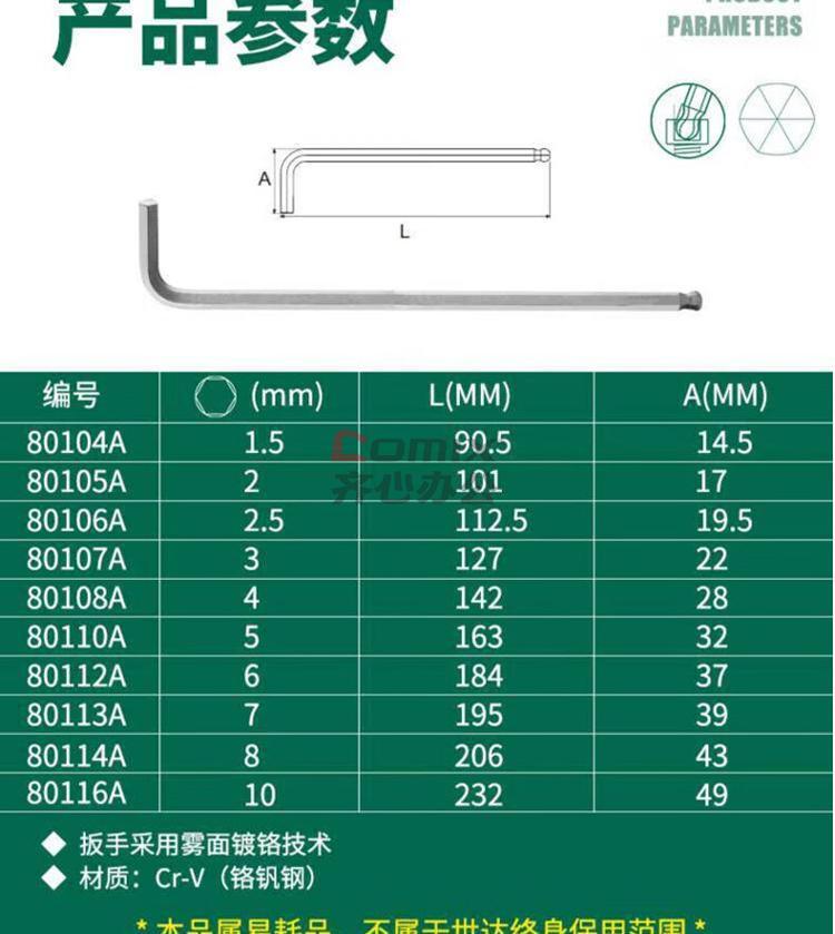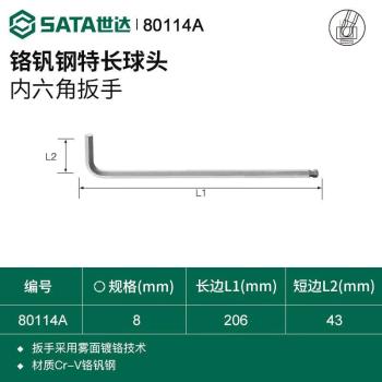 商品名称:世达 铬钒钢特长球头内六角扳手8MM 货号:80114A 单位:把