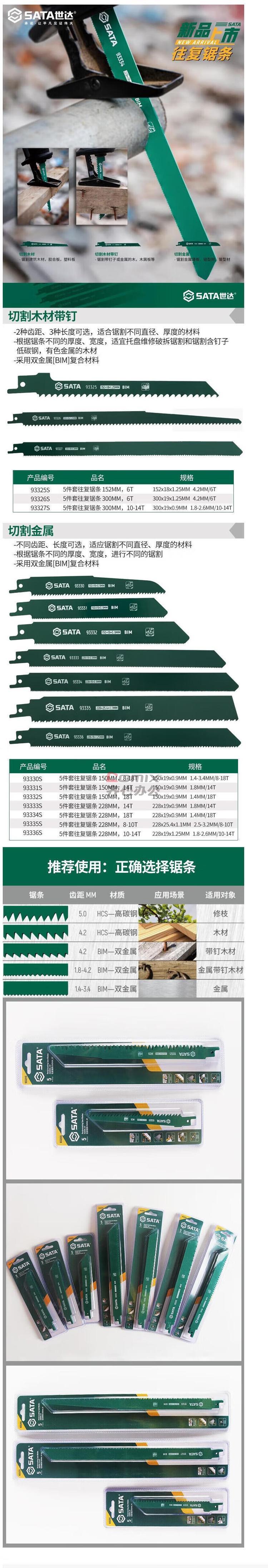 商品名称:世达 5件套往复锯条300MM,10-14T 货号:93327S 单位:套