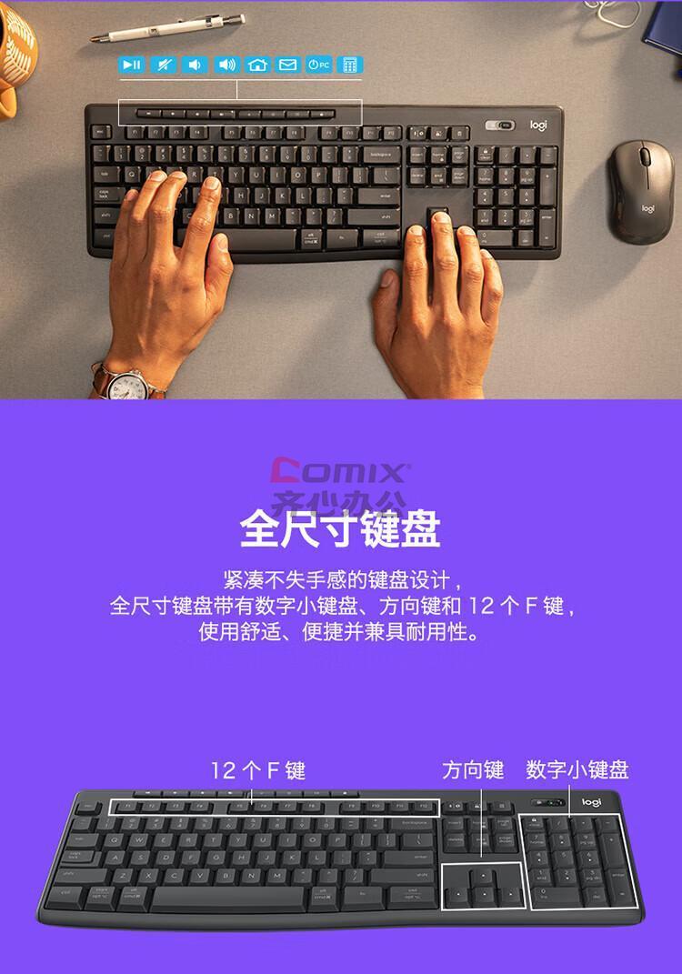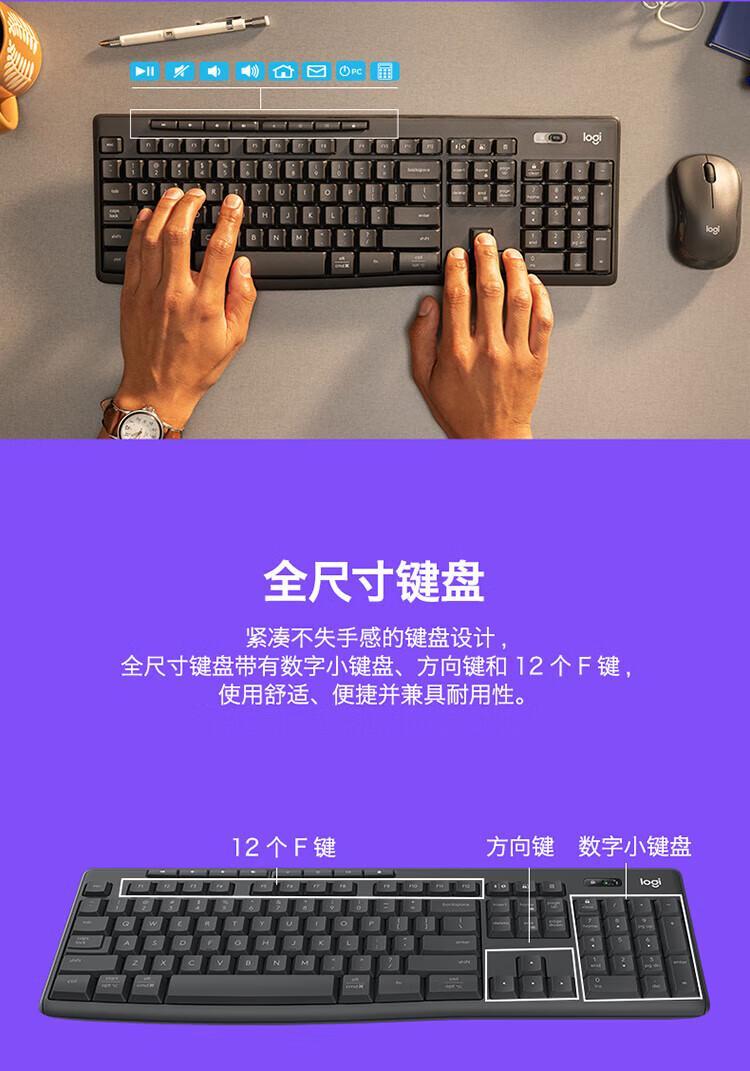 商品名称:罗技(Logitech)MK370 无线键鼠套装 商务办公蓝牙鼠标键盘 全尺寸 带bolt接收器 商用版 黑色