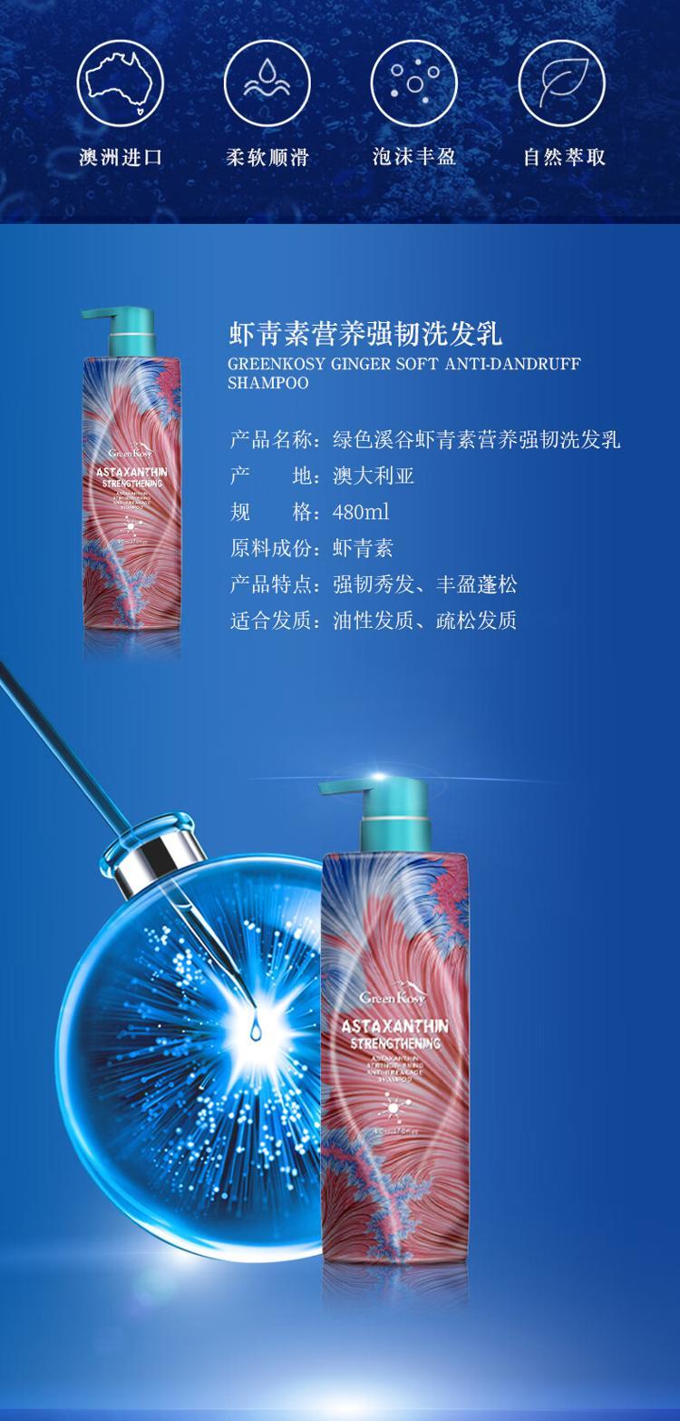 商品名称:绿色溪谷 虾青素营养强韧洗发乳480ml 单位:瓶