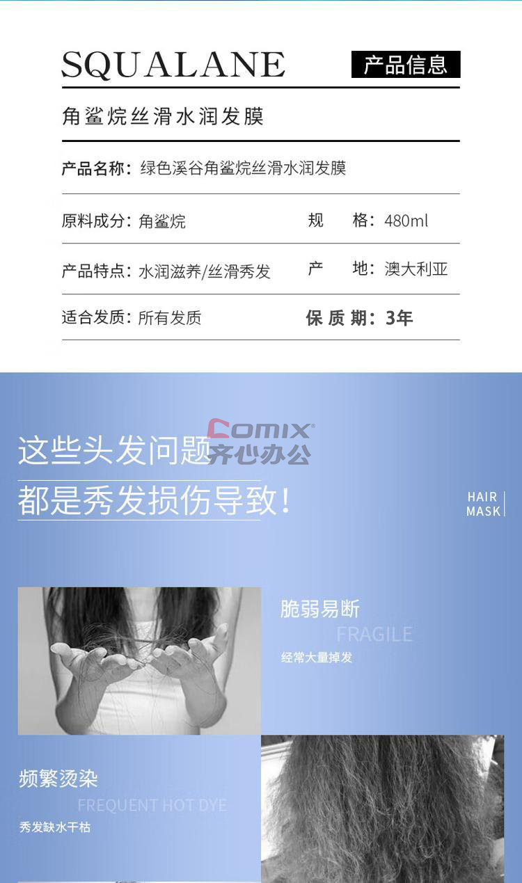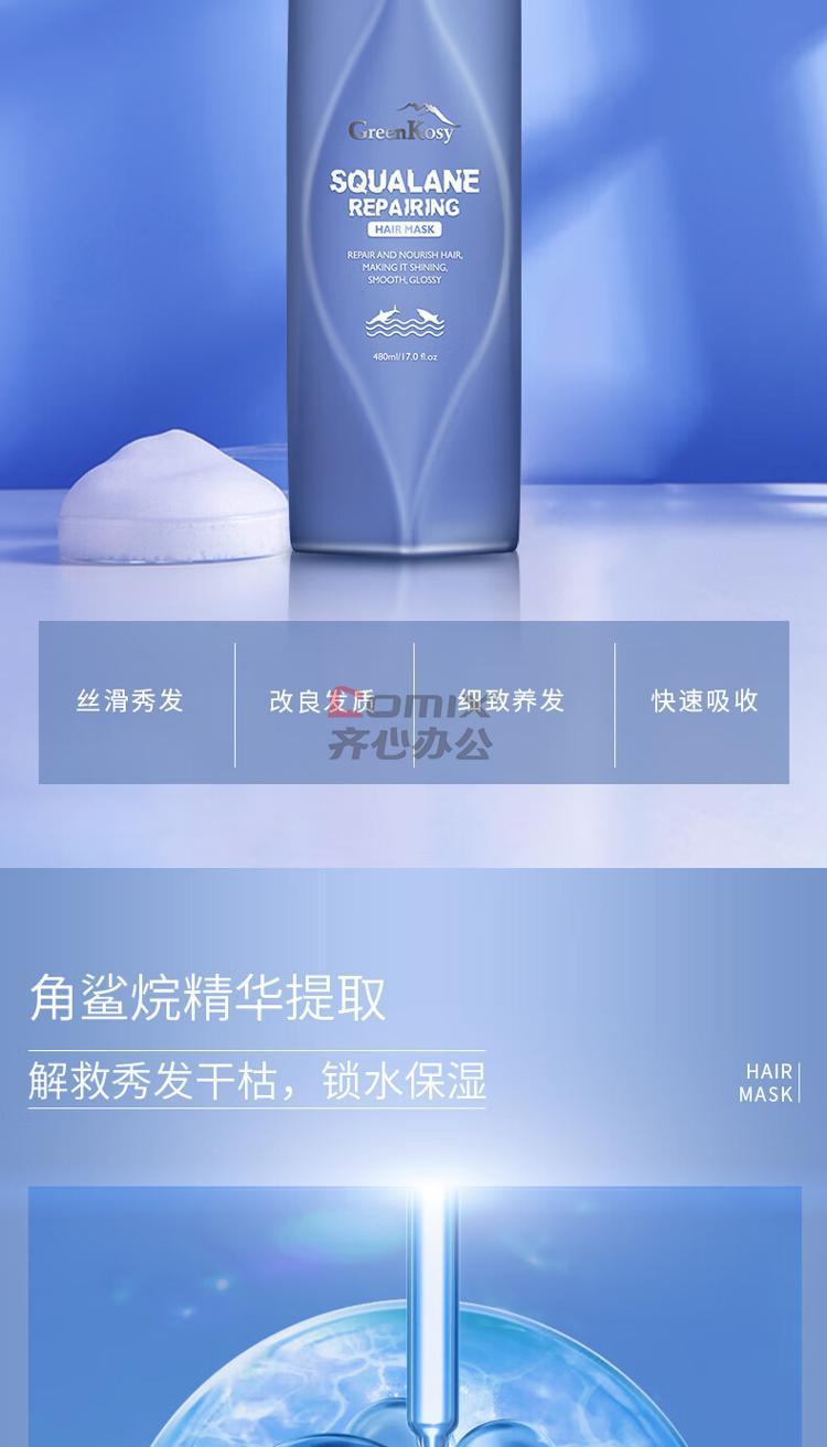 商品名称:绿色溪谷 角鲨烷丝滑水润发膜 480ml 单位:瓶