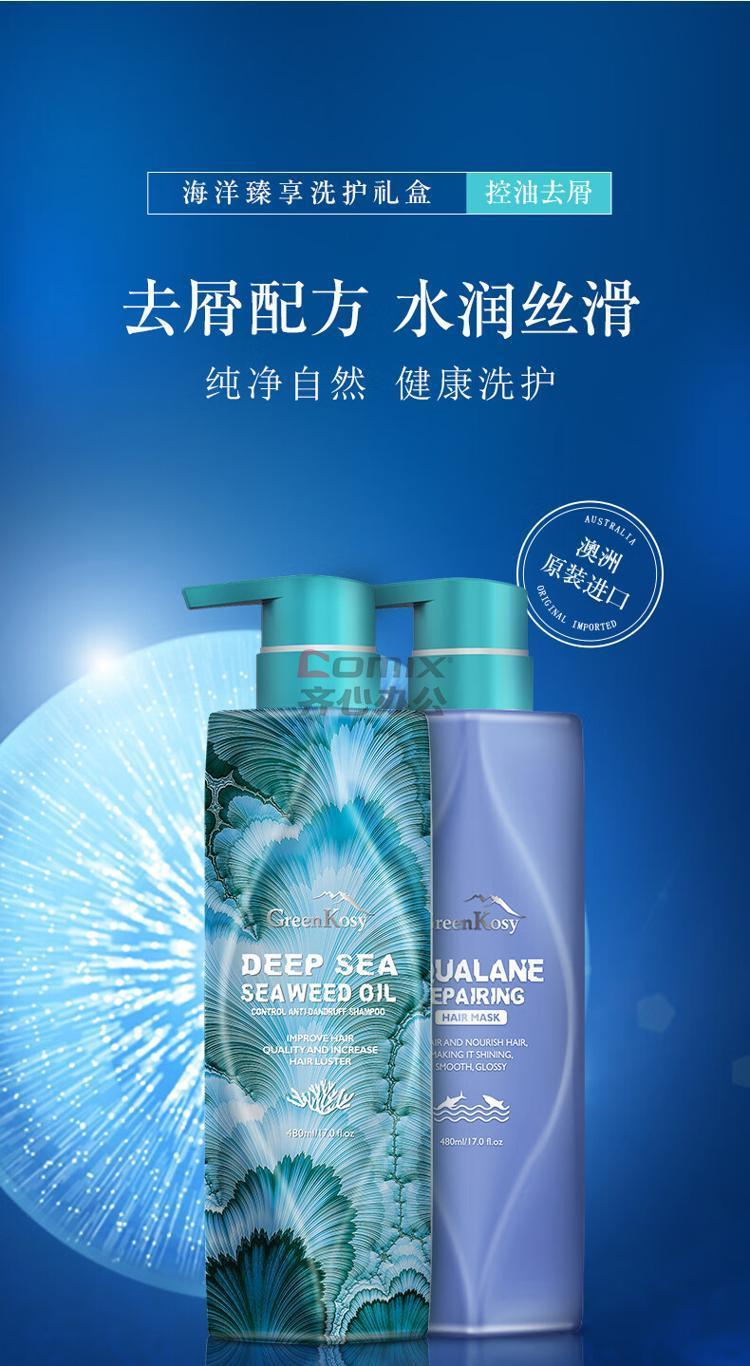 绿色溪谷 海洋臻享洗护礼盒(绿色溪谷 深海海藻控油去屑洗发乳480ml+绿色溪谷 角鲨烷滋养修护发膜 480ml) 单位:套