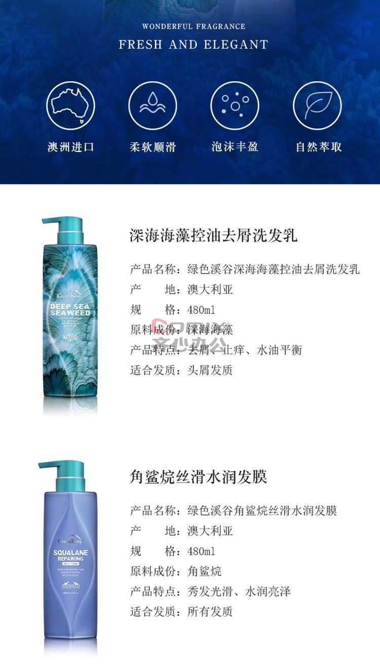 - 商品名称:绿色溪谷 海洋臻享洗护礼盒(绿色溪谷 深海海藻控油去屑洗发乳480ml+绿色溪谷 角鲨烷滋养修护发膜 480ml) 单位:套